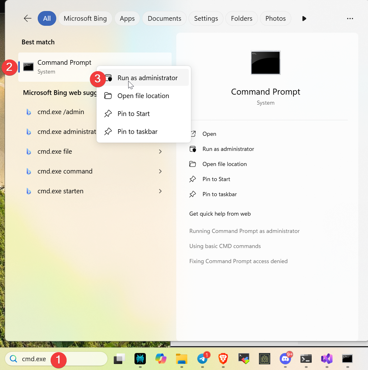 - Open Command Prompt as Administrator (right-click CMD → Run as administrator)